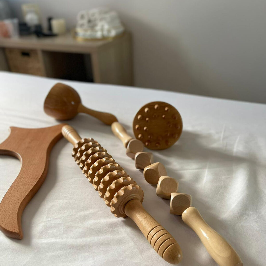 עיסוי גוף לימפטי בשיטת Wood Therapy טיפול מגע עמוק ועדין, בשילוב כלי עץ טבעיים, שמעודדים ניקוז לימפטי טבעי, שחרור עומסים ותחושת קלילות. הטכניקה פועלת על השכבות העמוקות של הרקמות, ומסייעת בהפחתת צלוליט, שיפור זרימת הדם וחידוש אנרגטי.