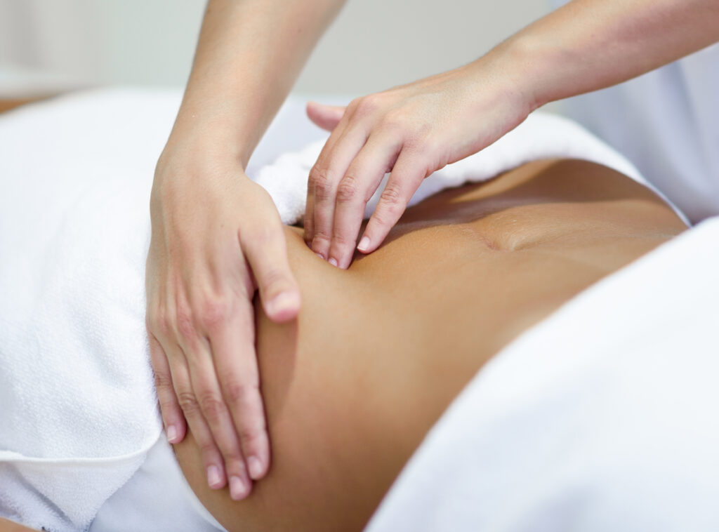 מגע עדין בבטן התחתונה לשחרור רגשות כלואים.